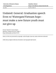 - Graduation speech Even w/ Watergate/Vietnam hope - must make a new future youth must not give up