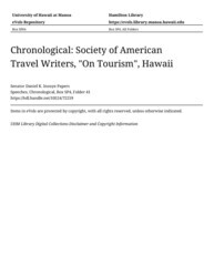 - Society of American Travel Writers, "On Tourism", Hawaii