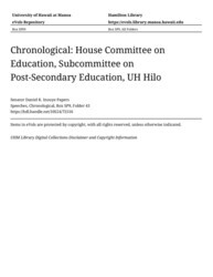 - House Committee on Education, Subcommittee on Post-Secondary Education, UH Hilo