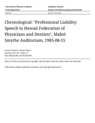 - "Professional Liability: Speech to Hawaii Federation of Physicians and Dentists", Mabel Smythe Auditorium