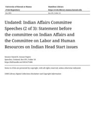 - Statement before the committee on Indian Affairs and the Committee on Labor and Human Resources on Indian Head Start issues