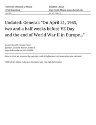 - "On April 21, 1945, two and a half weeks before VE Day and the end of World War II in Europe..."