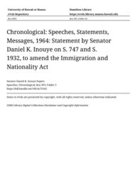 - Statement by Senator Daniel K. Inouye on S. 747 and S. 1932, to amend the Immigration and Nationality Act