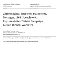 - Speech to 9th Representative District Campaign Kickoff Dinner, Wahiawa
