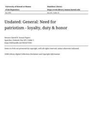 - Need for patriotism - loyalty, duty & honor