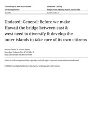 - Before we make Hawaii the bridge between east & west need to diversify & develop the outer islands to take care of its own citizens