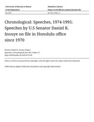 - Speeches by U.S Senator Daniel K. Inouye on file in Honolulu office since 1970