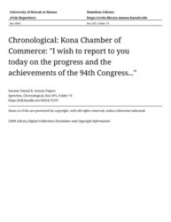 - Kona Chamber of Commerce: "I wish to report to you today on the progress and the achievements of the 94th Congress..."