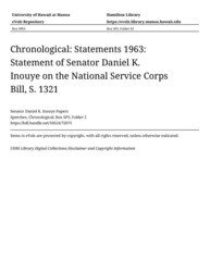 - Chronological: Statements 1963: Statement of Senator Daniel K. Inouye on the National Service Corps Bill, S. 1321