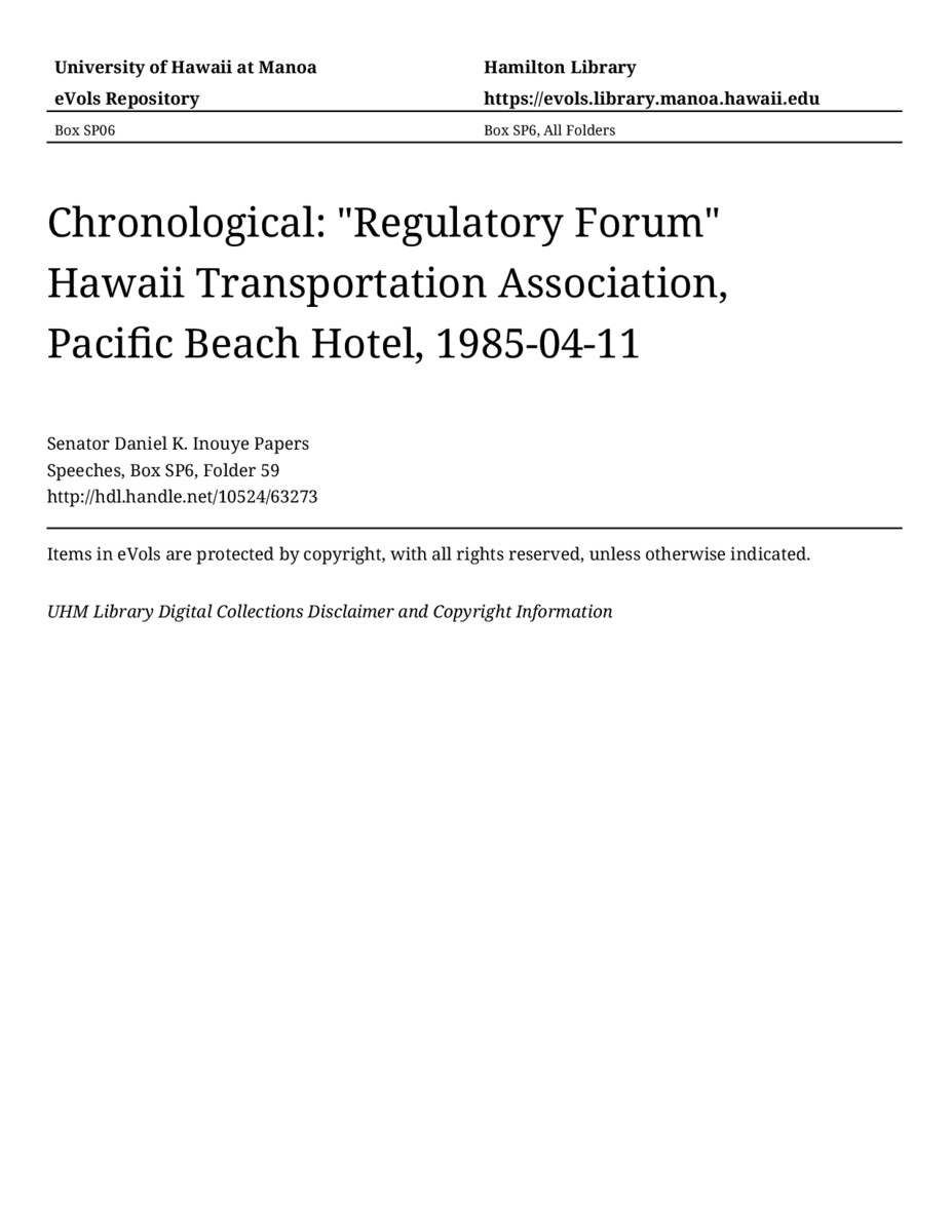 "Regulatory Forum" Hawaii Transportation Association, Pacific Beach Hotel