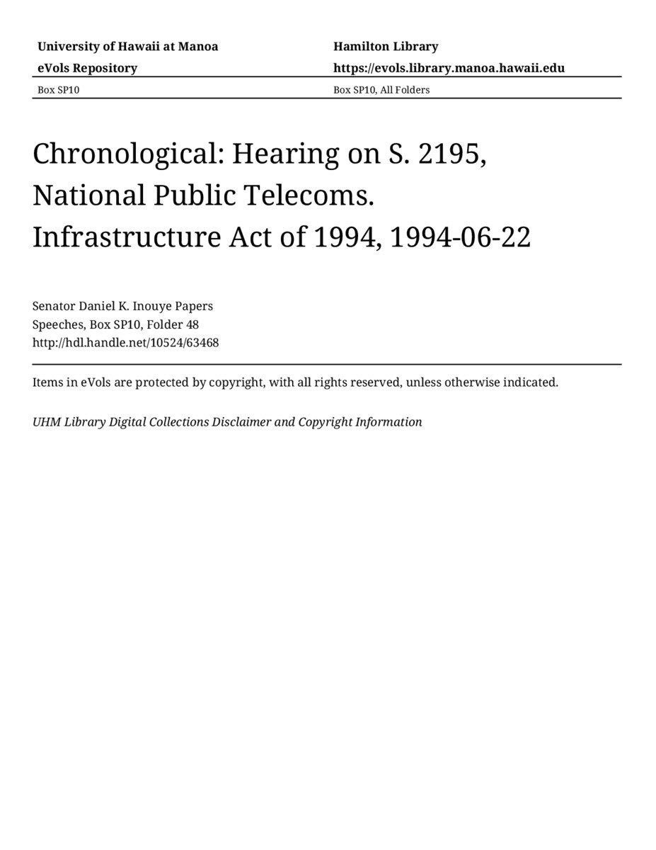 - Hearing on S. 2195, National Public Telecoms. Infrastructure Act of 1994