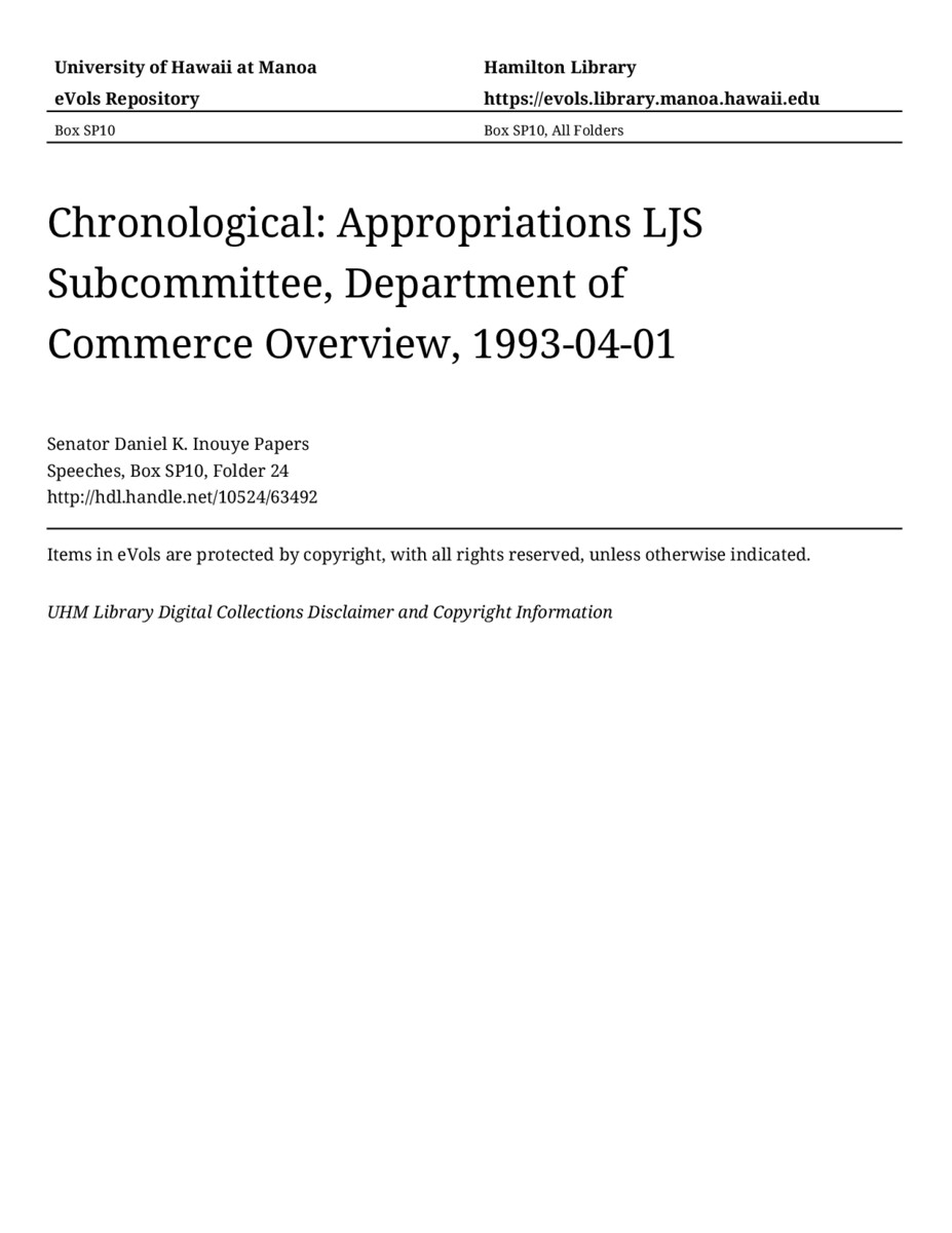 - Appropriations LJS Subcommittee, Department of Commerce Overview