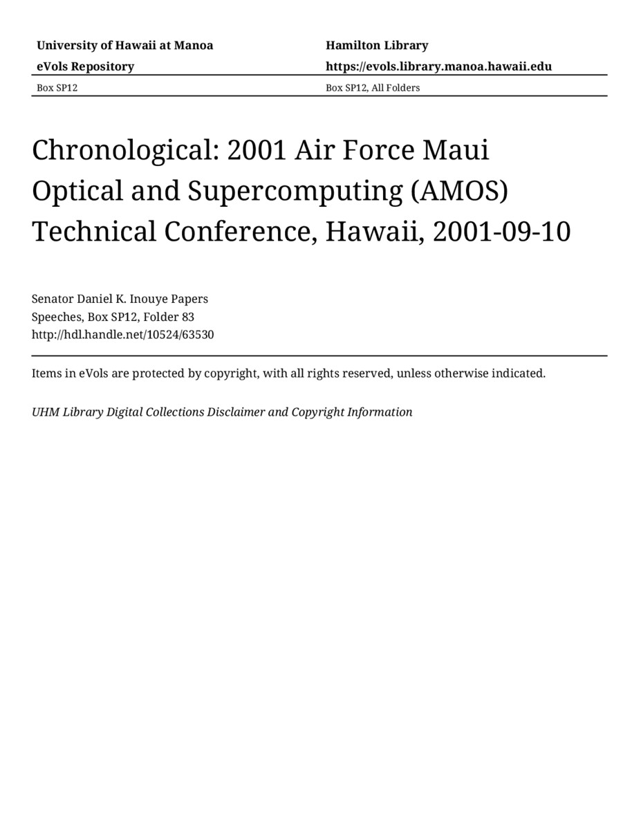 - 2001 Air Force Maui Optical and Supercomputing (AMOS) Technical Conference, Hawaii