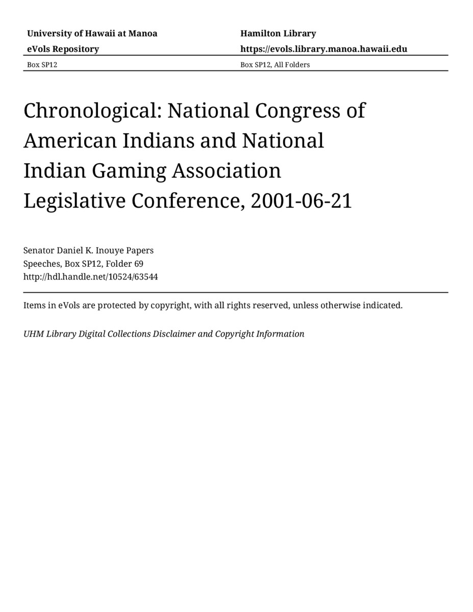 - National Congress of American Indians and National Indian Gaming Association Legislative Conference