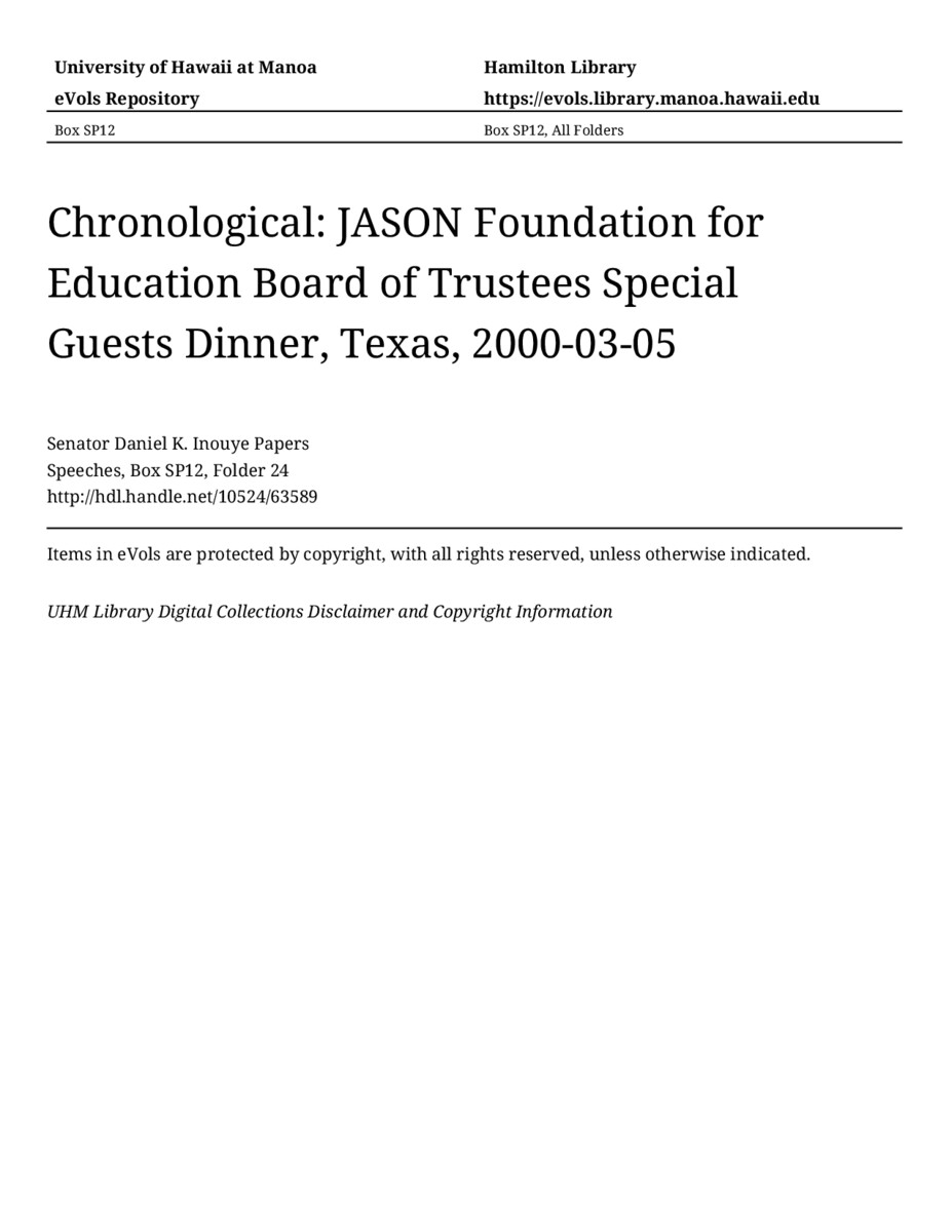 - JASON Foundation for Education Board of Trustees Special Guests Dinner, Texas