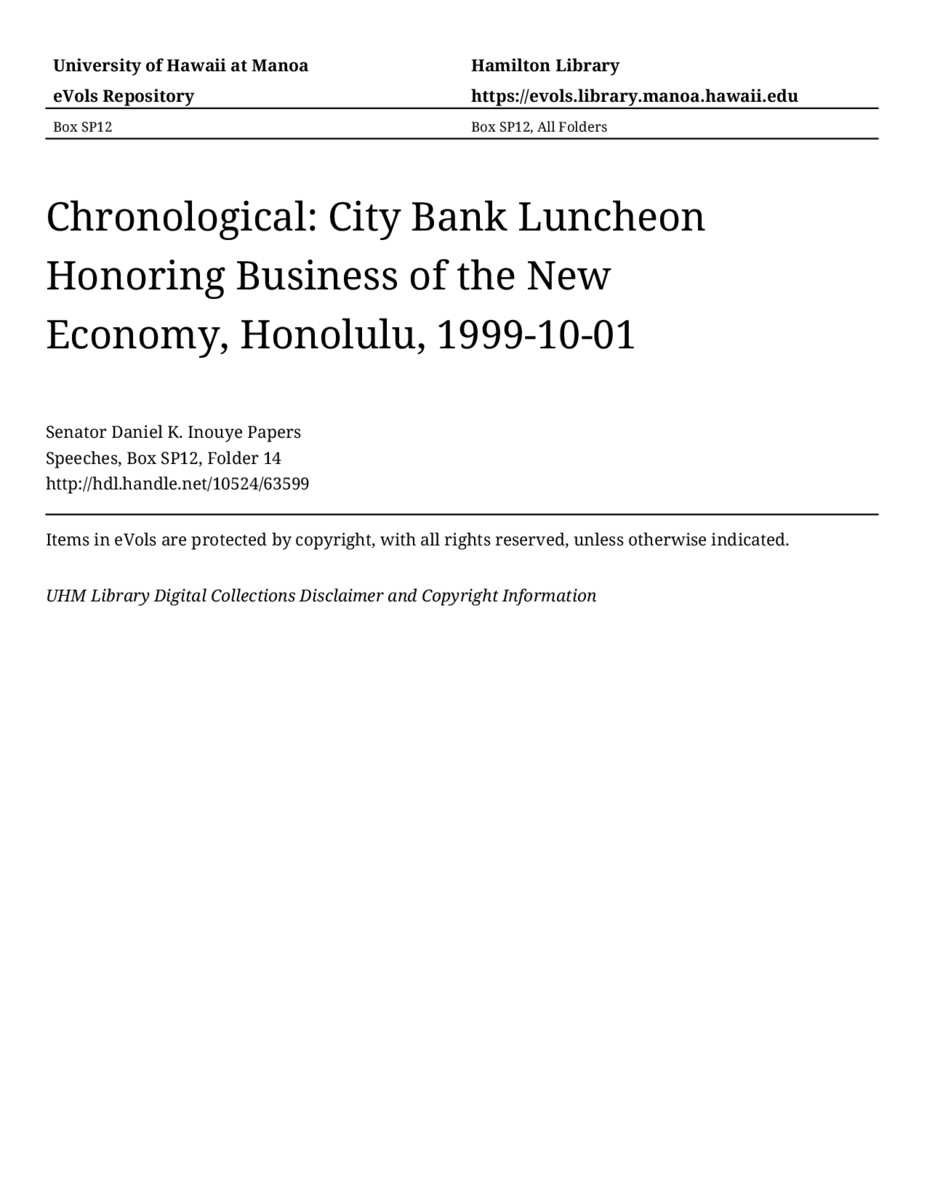 - City Bank Luncheon Honoring Business of the New Economy, Honolulu