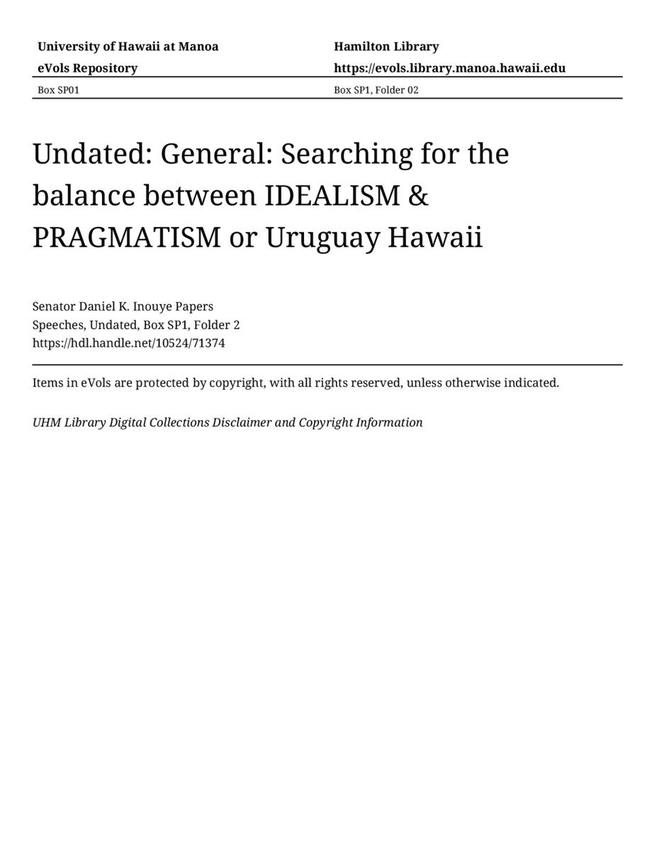 - Searching for the balance between IDEALISM & PRAGMATISM or Uruguay Hawaii