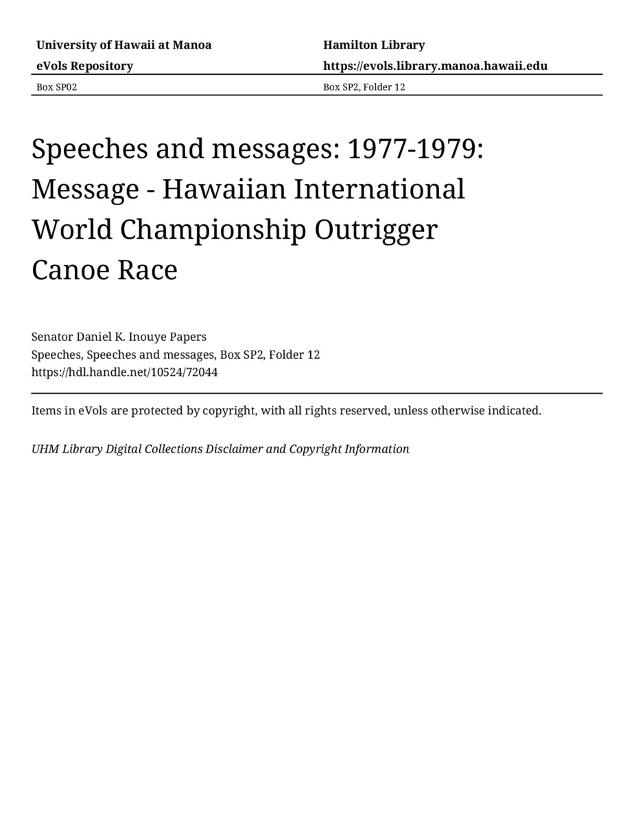 Message - Hawaiian International World Championship Outrigger Canoe Race