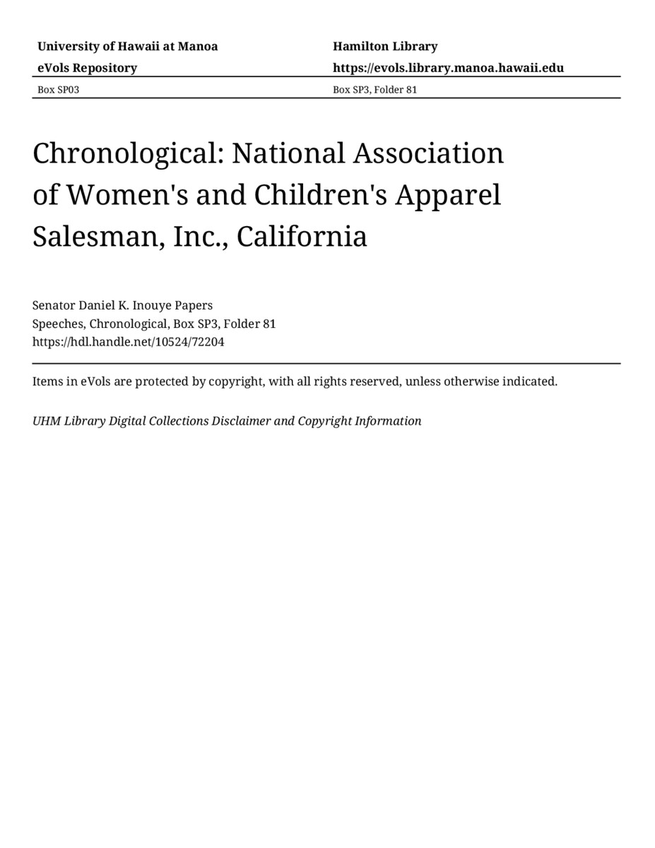 - National Association of Women's and Children's Apparel Salesman, Inc., California
