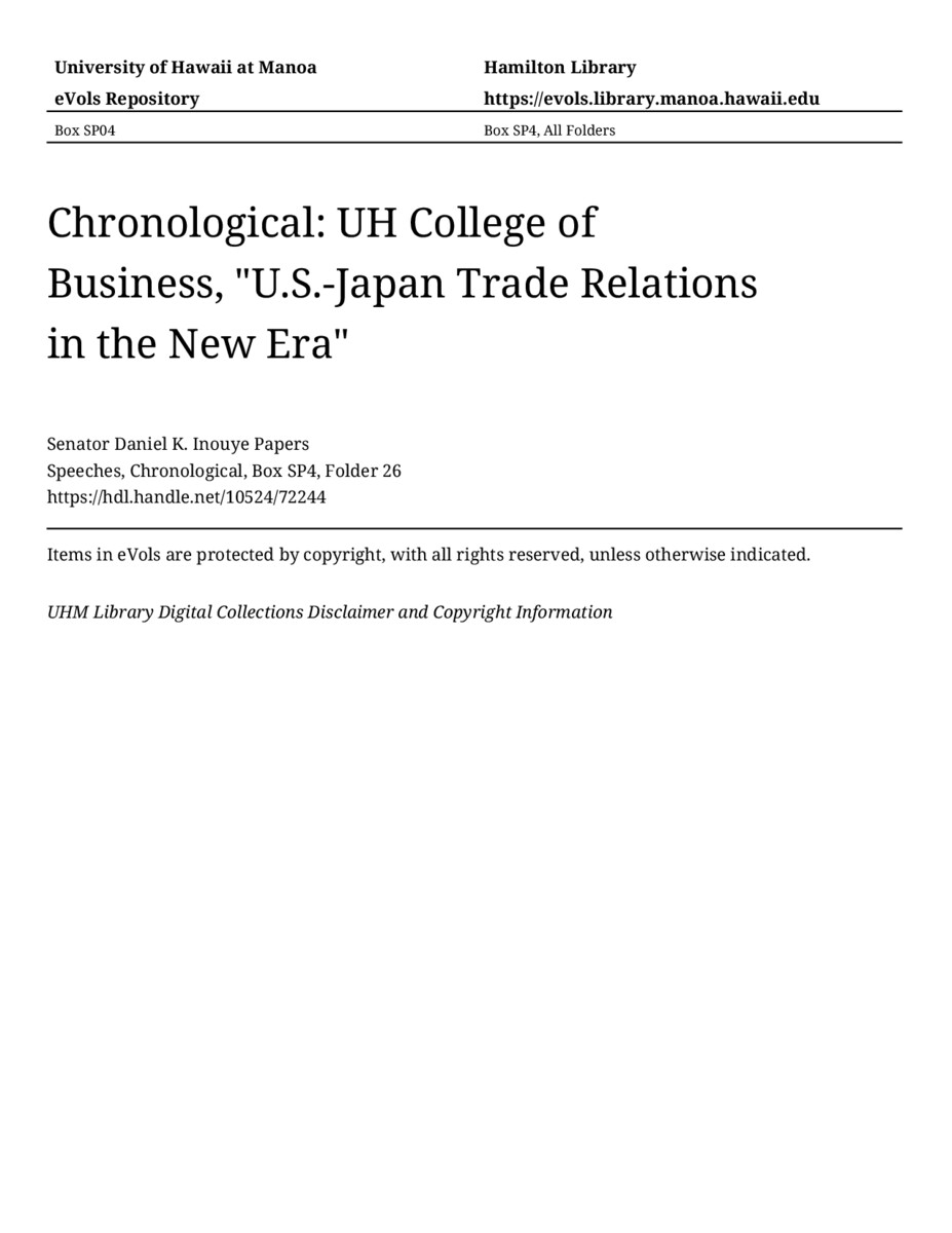 - UH College of Business, "U.S.-Japan Trade Relations in the New Era"