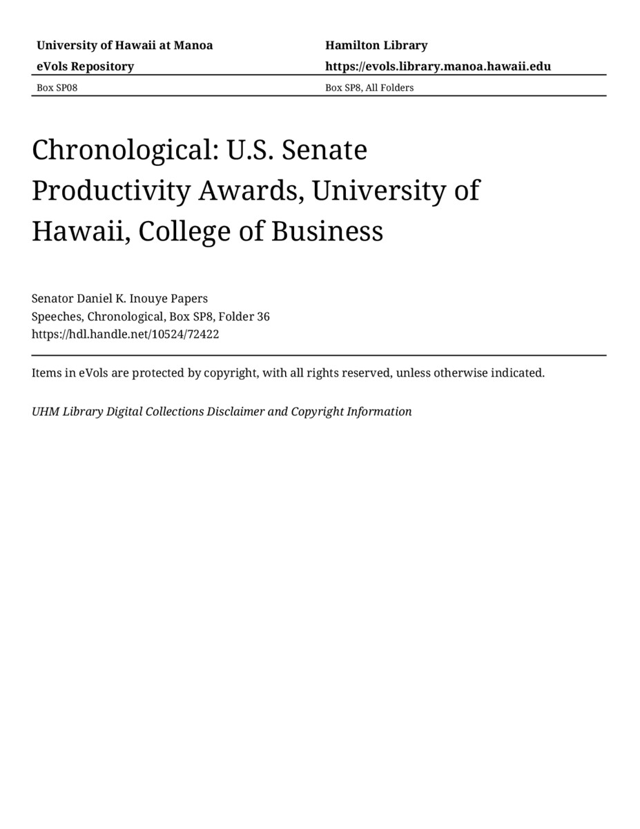 U.S. Senate Productivity Awards, University of Hawaii, College of Business