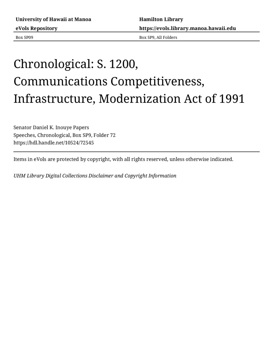 - S. 1200, Communications Competitiveness, Infrastructure, Modernization Act of 1991