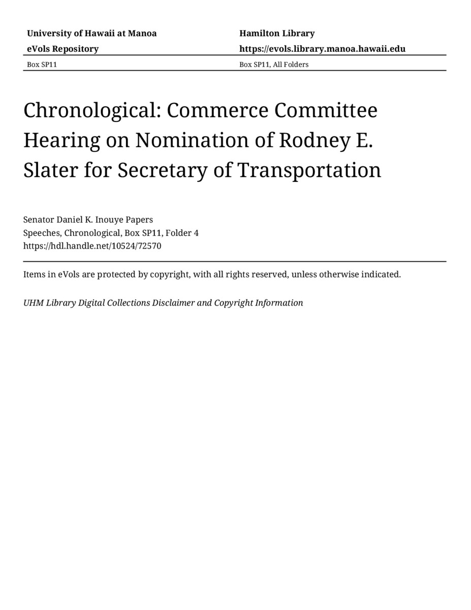 - Commerce Committee Hearing on Nomination of Rodney E. Slater for Secretary of Transportation
