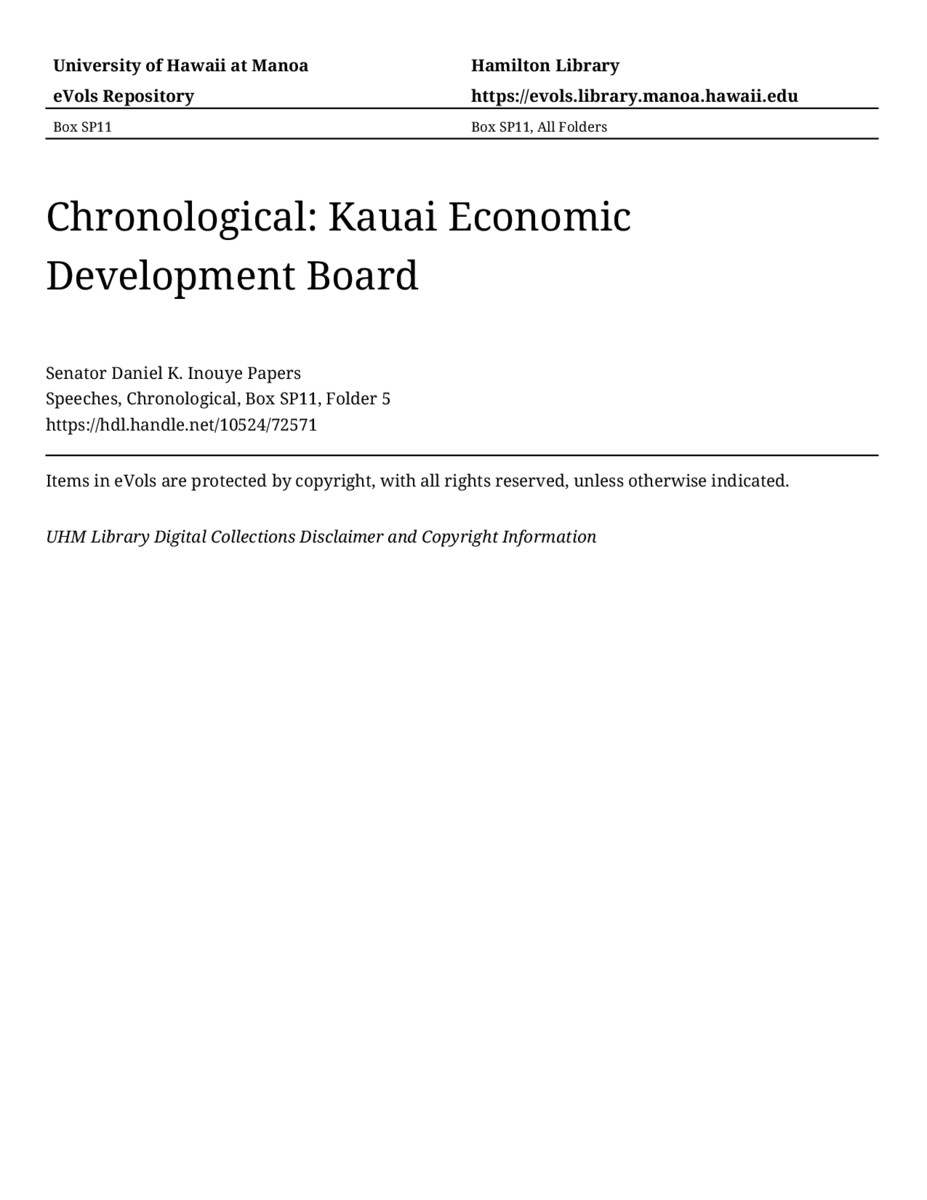 Kauai Economic Development Board, February 18, 1997, MANUSCRIPT-HCPC00011, Speeches, Chronological, Box SP11, Folder 5, Senator Daniel K. Inouye Papers, Hawaiʻi Congressional Papers Collection, University of Hawaiʻi at Mānoa Library, Honolulu, HI. https://omekas-congress.lib.wvu.edu/catalog/10524_72571 (accessed April 18, 2026).