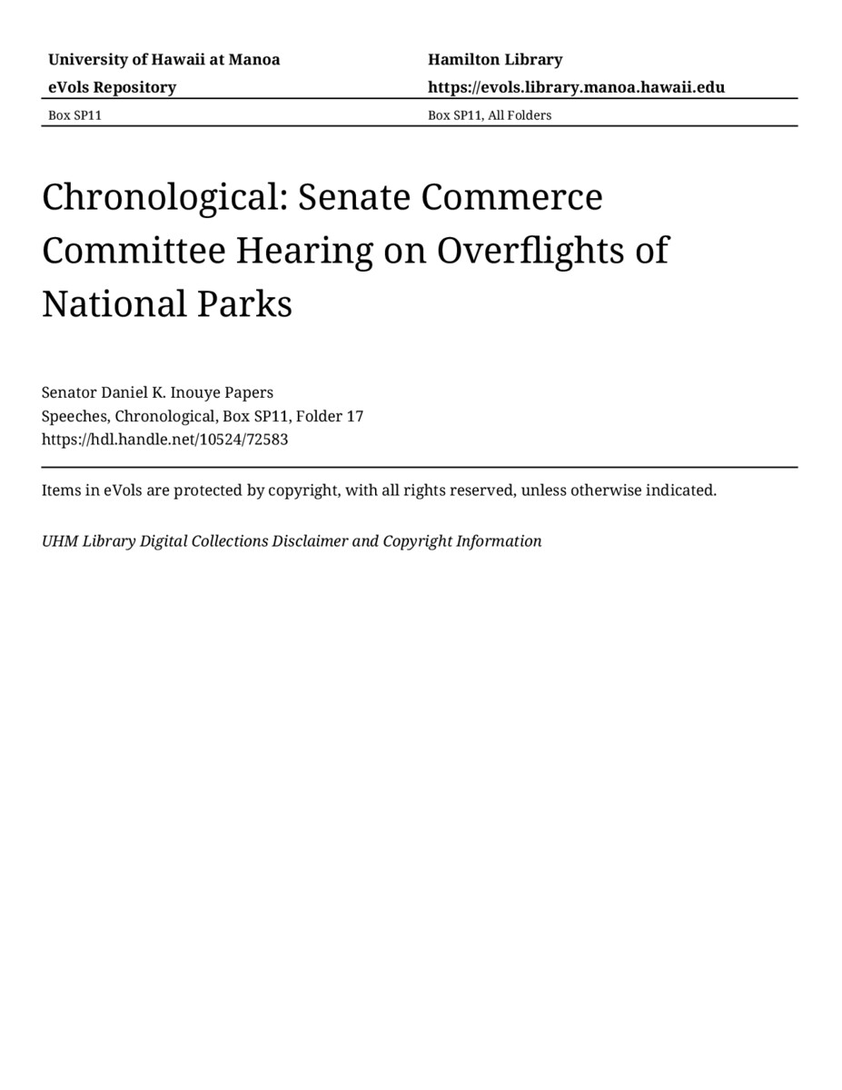 - Senate Commerce Committee Hearing on Overflights of National Parks