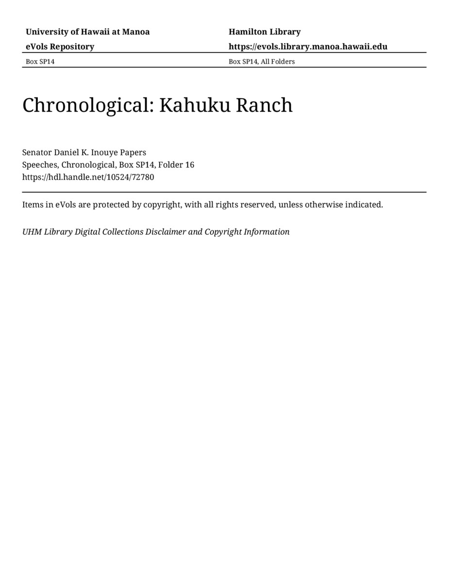 Kahuku Ranch, September 2, 2004, MANUSCRIPT-HCPC00011, Speeches, Chronological, Box SP14, Folder 16, Senator Daniel K. Inouye Papers, Hawaiʻi Congressional Papers Collection, University of Hawaiʻi at Mānoa Library, Honolulu, HI. https://omekas-congress.lib.wvu.edu/catalog/10524_72780 (accessed April 18, 2026).