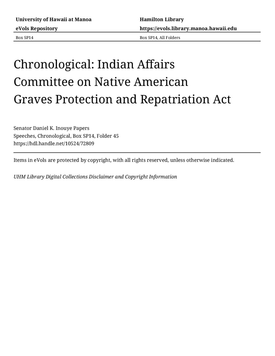 - Indian Affairs Committee on Native American Graves Protection and Repatriation Act