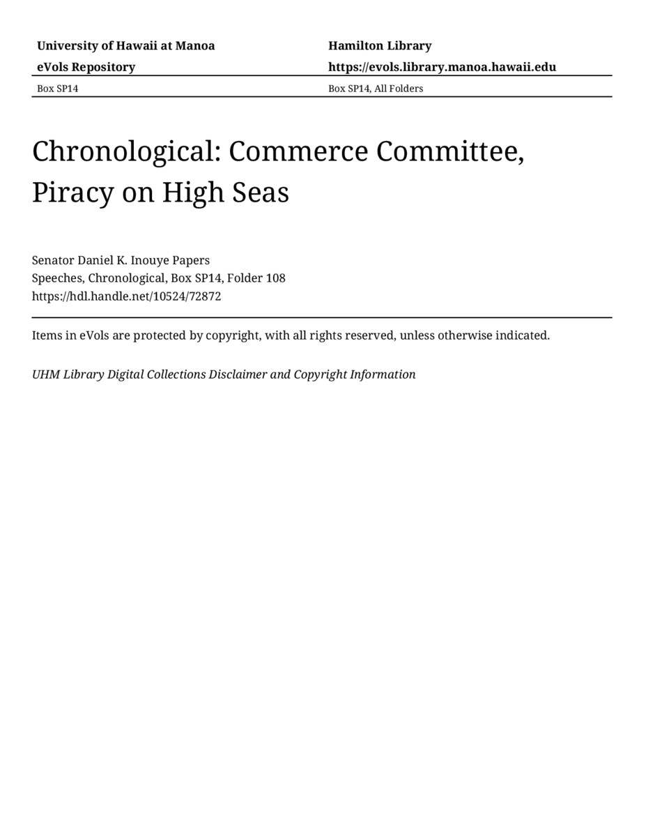 Commerce Committee, Piracy on High Seas, May 5, 2009, MANUSCRIPT-HCPC00011, Speeches, Chronological, Box SP14, Folder 108, Senator Daniel K. Inouye Papers, Hawaiʻi Congressional Papers Collection, University of Hawaiʻi at Mānoa Library, Honolulu, HI. https://omekas-congress.lib.wvu.edu/catalog/10524_72872 (accessed April 19, 2026).