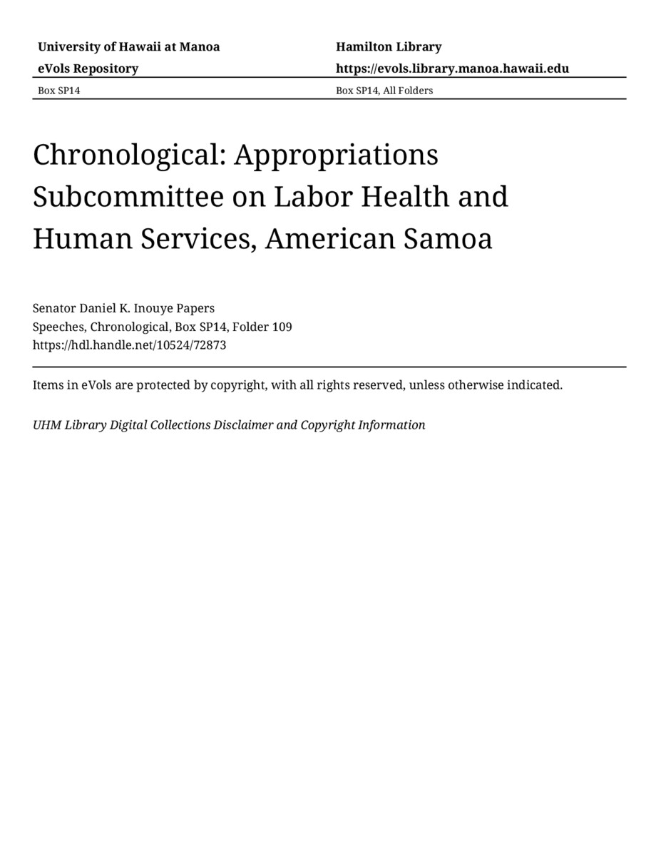 - Appropriations Subcommittee on Labor Health and Human Services, American Samoa
