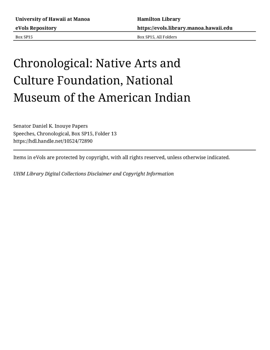Native Arts and Culture Foundation, National Museum of the American Indian