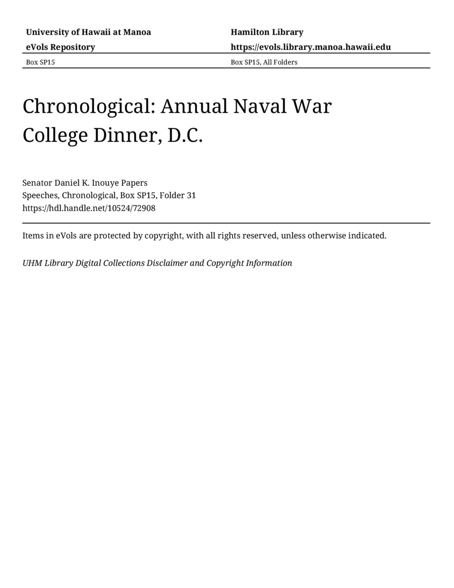 Annual Naval War College Dinner, D.C., May 5, 2011, MANUSCRIPT-HCPC00011, Speeches, Chronological, Box SP15, Folder 31, Senator Daniel K. Inouye Papers, Hawaiʻi Congressional Papers Collection, University of Hawaiʻi at Mānoa Library, Honolulu, HI. https://omekas-congress.lib.wvu.edu/catalog/10524_72908 (accessed April 16, 2026).