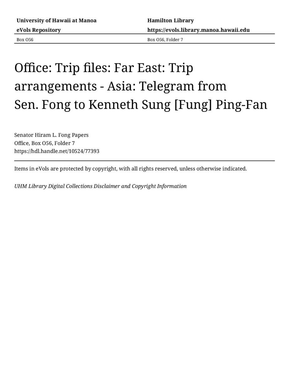 - Senator Hiram L. Fong Papers