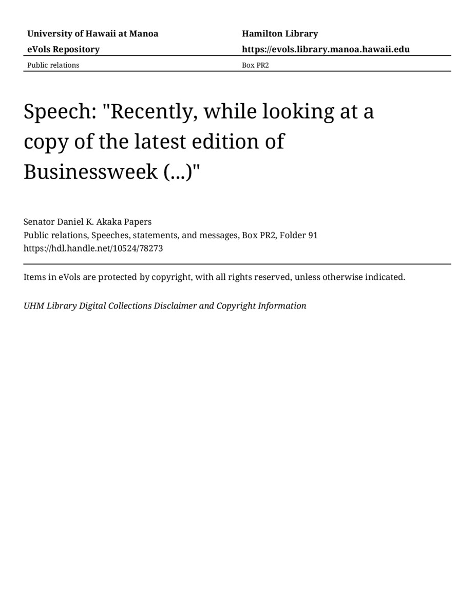 - Speech: "Recently, while looking at a copy of the latest edition of Businessweek (...)"
