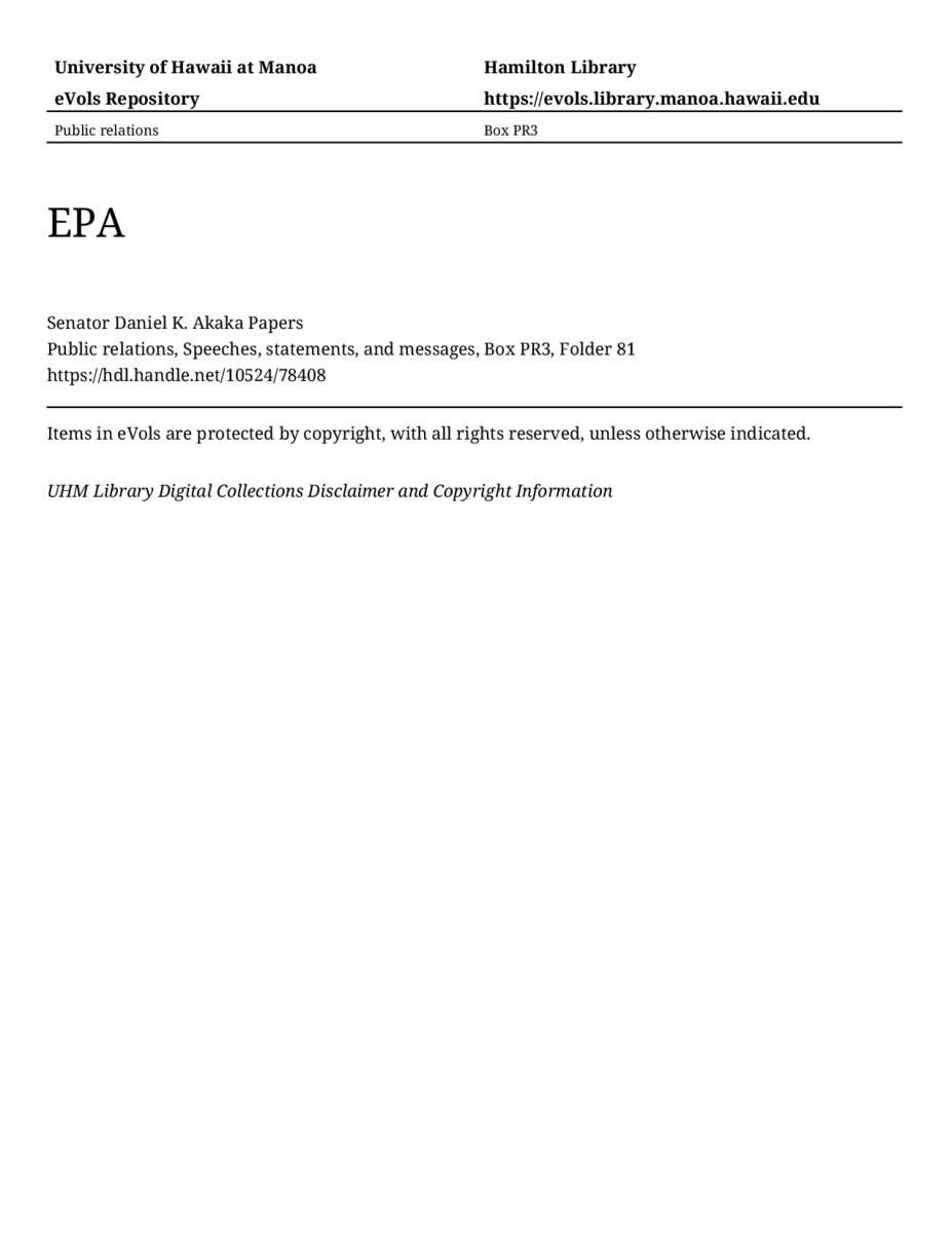 - MANUSCRIPT-HCPC00010, Public relations, Speeches, statements, and messages, Box PR3, Folder 81