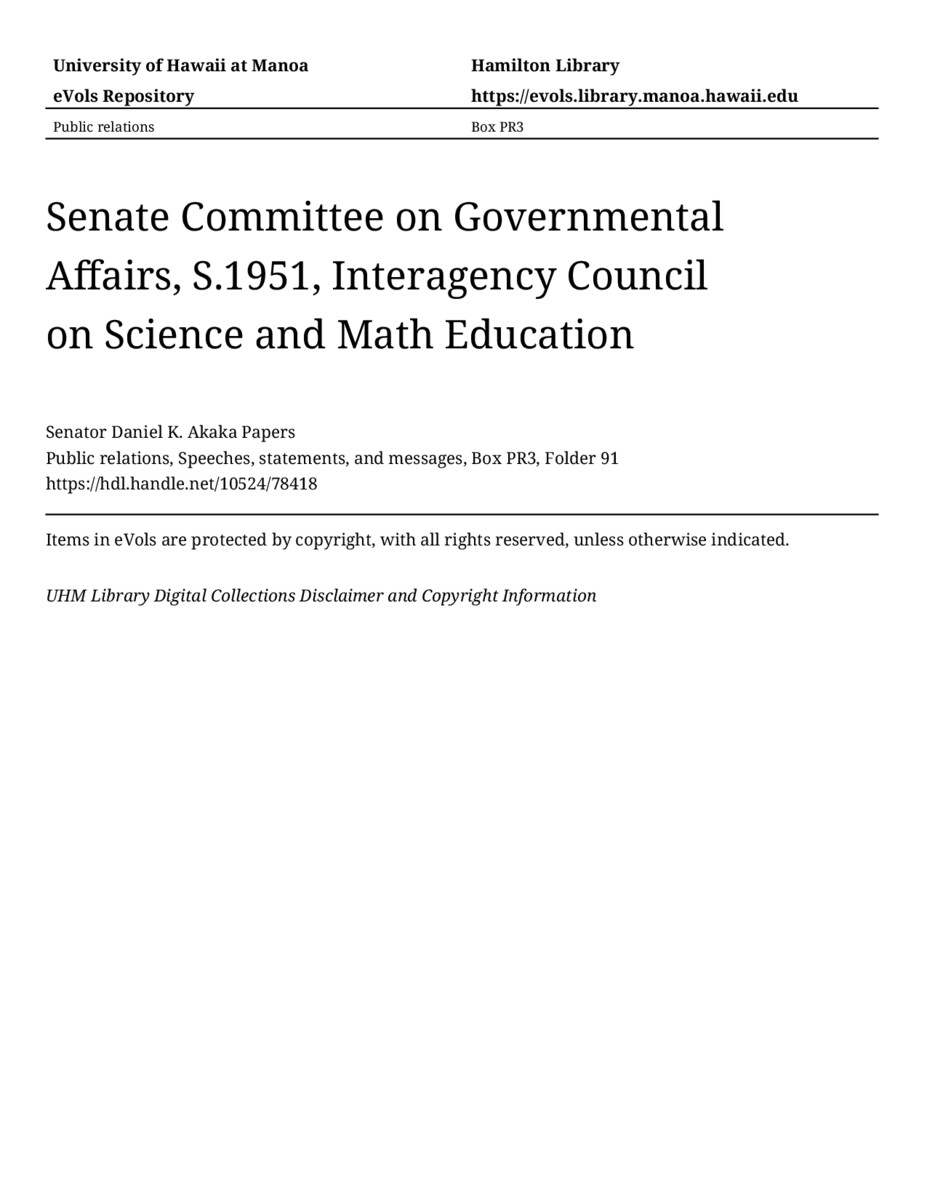 - Senate Committee on Governmental Affairs, S.1951, Interagency Council on Science and Math Education