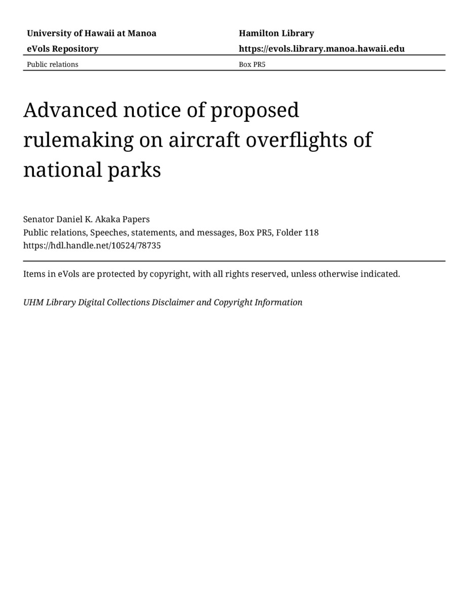 - Advanced notice of proposed rulemaking on aircraft overflights of national parks