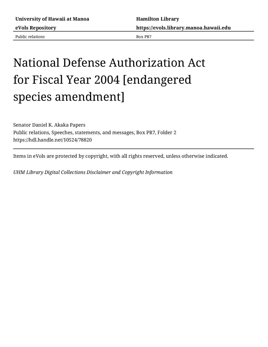 - National Defense Authorization Act for Fiscal Year 2004 [endangered species amendment]