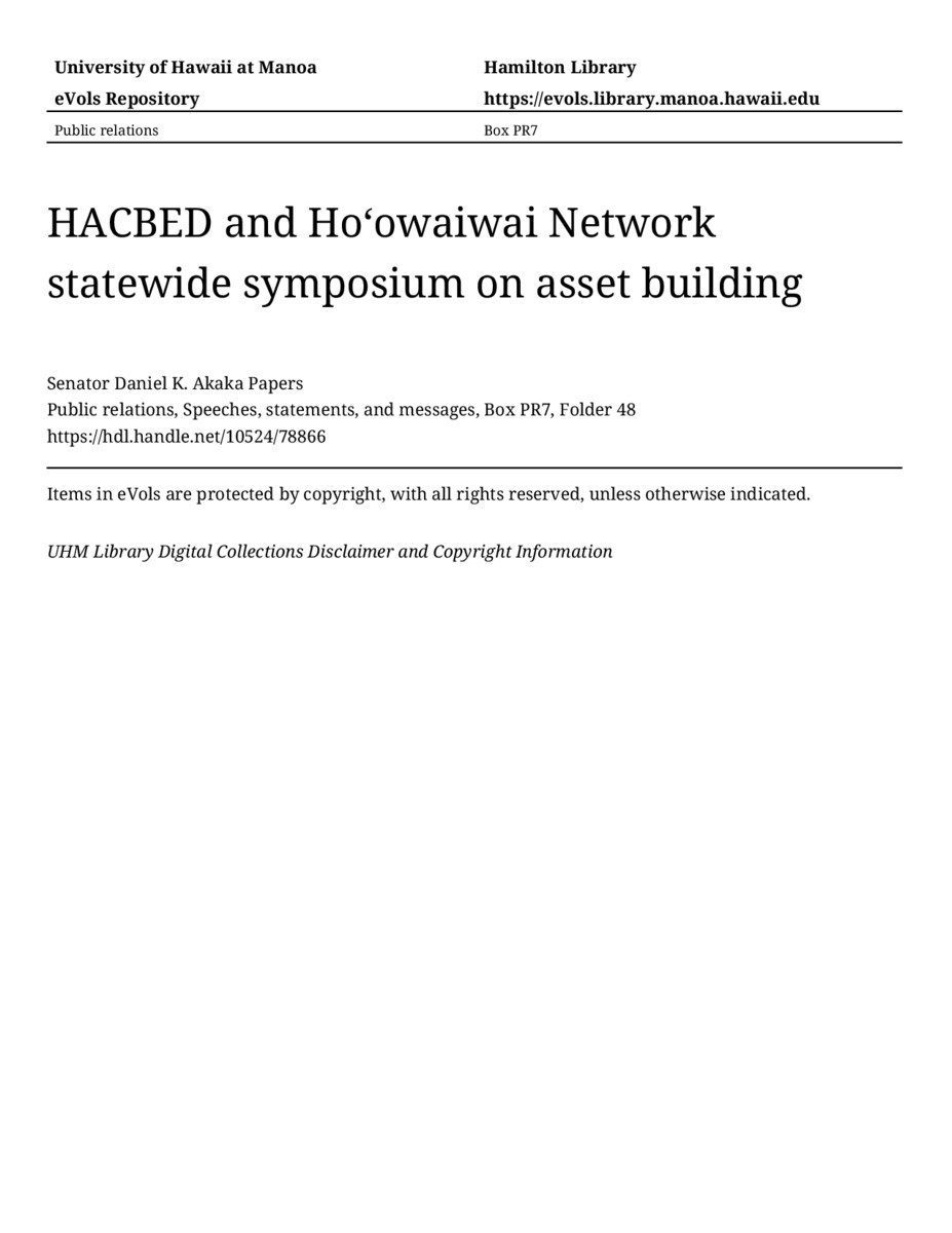 - HACBED and Hoʻowaiwai Network statewide symposium on asset building