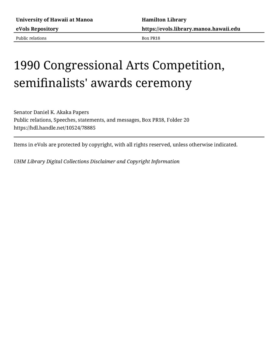 - 1990 Congressional Arts Competition, semifinalists' awards ceremony