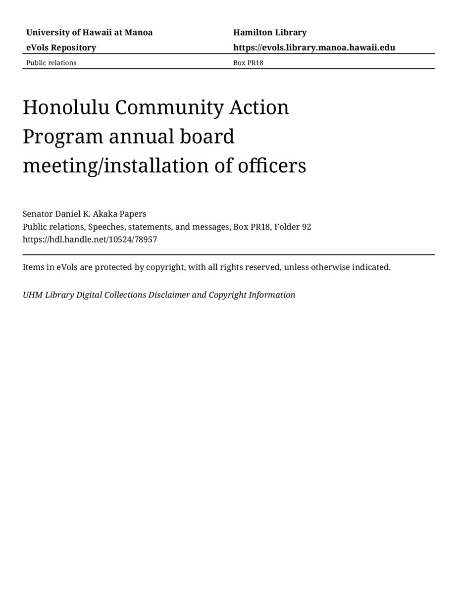 - Honolulu Community Action Program annual board meeting/installation of officers