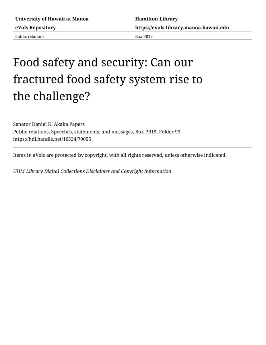 - Food safety and security: Can our fractured food safety system rise to the challenge?