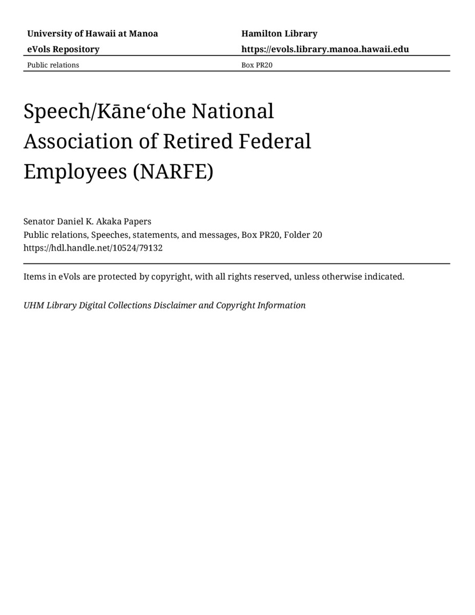 - Speech/Kāneʻohe National Association of Retired Federal Employees (NARFE)