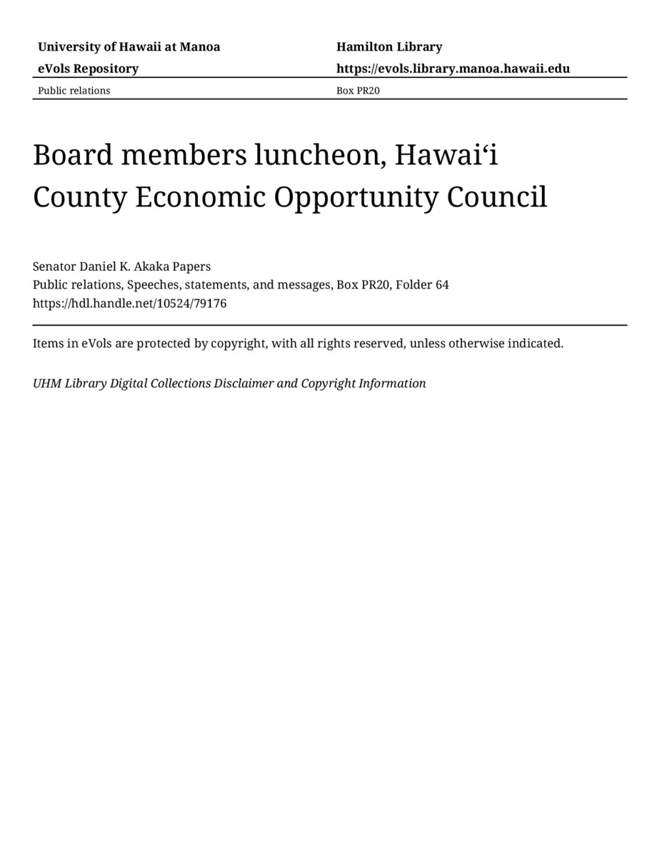- Board members luncheon, Hawaiʻi County Economic Opportunity Council