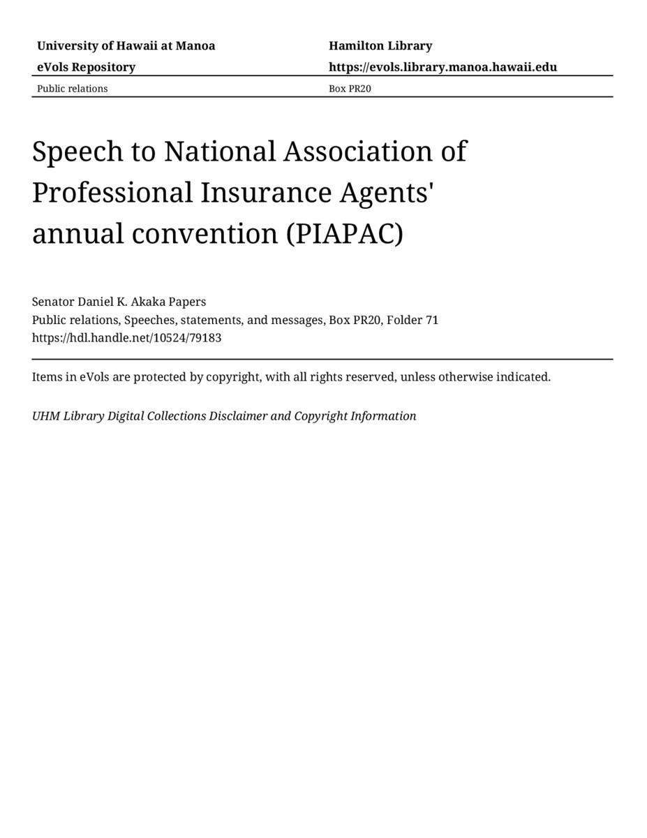 Speech to National Association of Professional Insurance Agents' annual convention (PIAPAC)