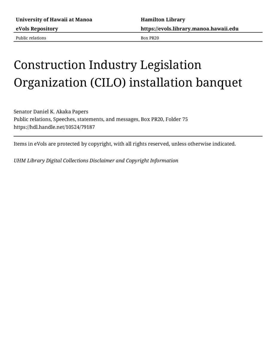 - Construction Industry Legislation Organization (CILO) installation banquet