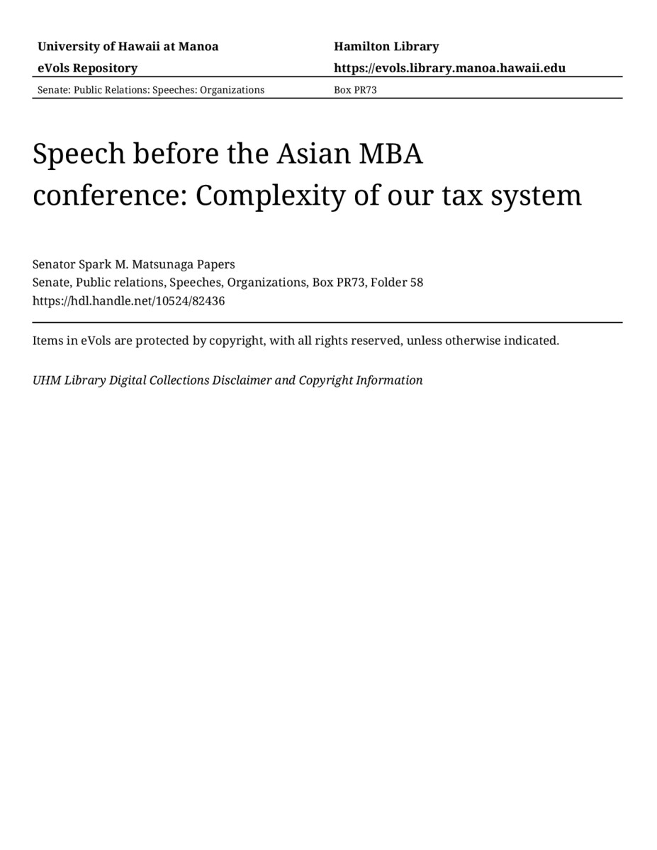 - Speech before the Asian MBA conference: Complexity of our tax system
